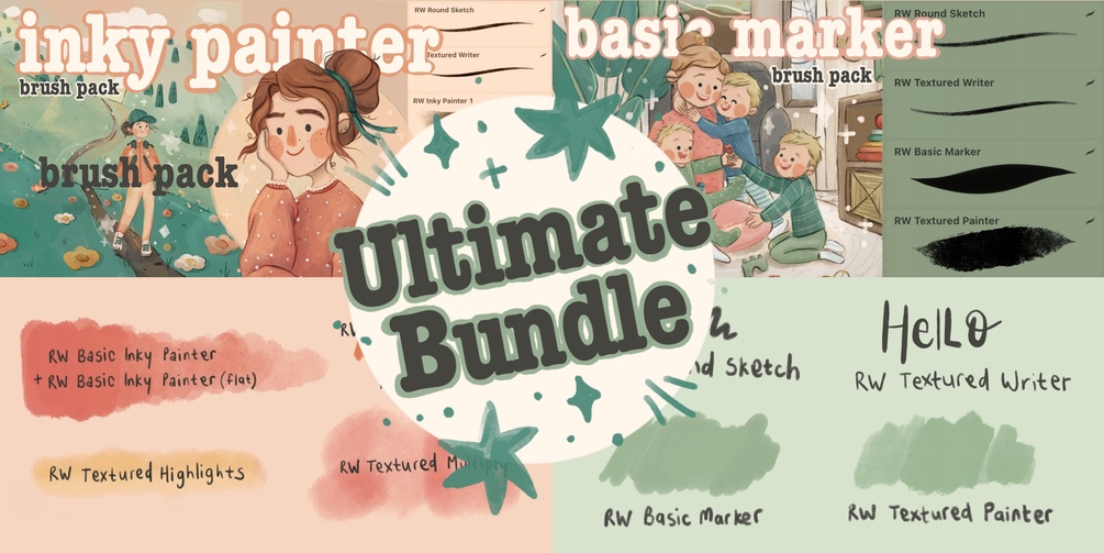 RW Brush BundleRoche Woodworth4 ratingsBuy both my brush packs at a 25% discount.$1212usdRW Brush BundleGet my two brush packs at a 25% discount.$1414usdRW Brush Bundle + Color PalettesGet my two brush packs at a 25% discount + my two most used color palettes.212usdBuy this2 procreate brush packsAdd to wishlist New wishlistShareShare on XShare on Facebook Copy linkCopy product URLRatings5(4 ratings)455 stars100%4 stars0%3 stars0%2 stars0%1 star0%