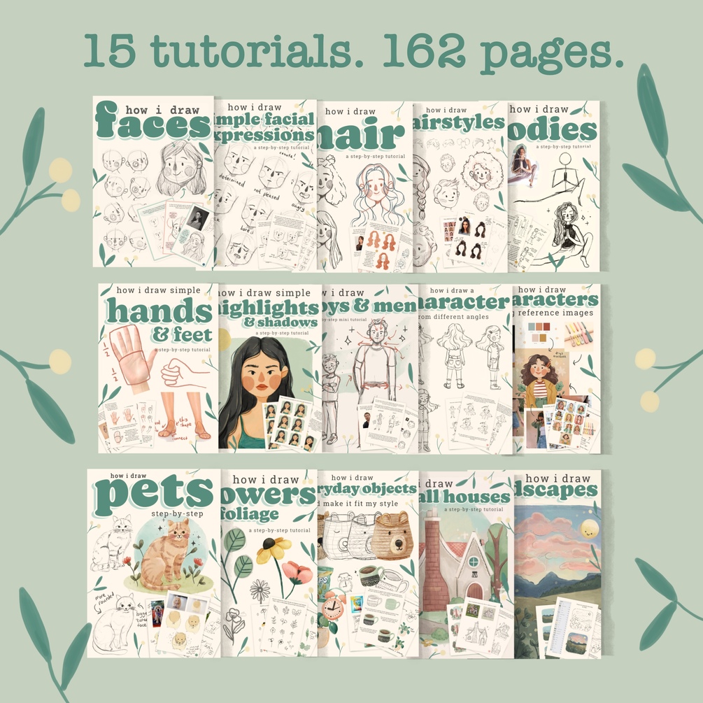 Best value bundle! Get my 2 Procreate brush packs, 3 most used color palettes, as well as 15 of my Patreon mini tutorials.